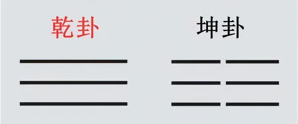 一个坚实的、一划到底的横线就是阳爻,代表阳性的事物,比如乾卦就是由三个阳爻组成。