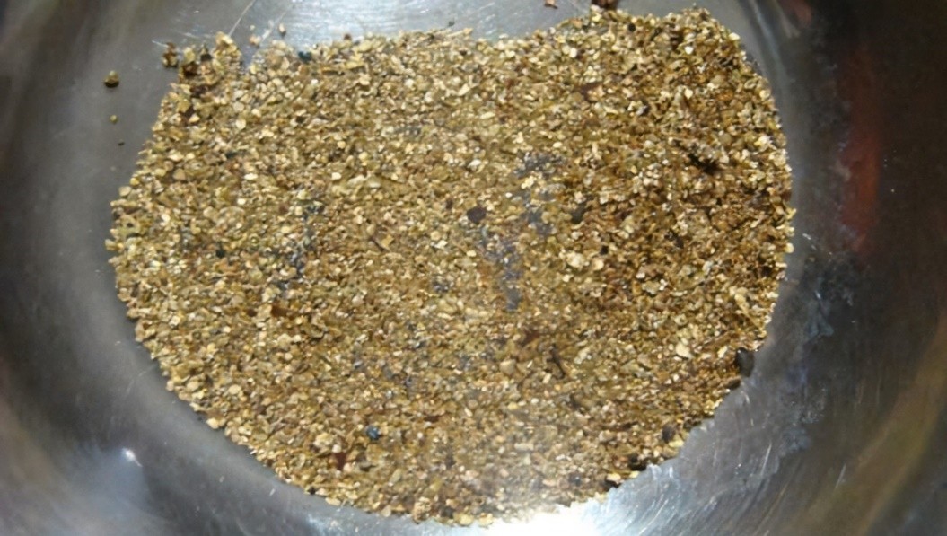 将筛选出的金砂放入水槽中,利用水流将金砂与较小的砂石分离。黄金比砂石重,因此会沉在水槽底部。