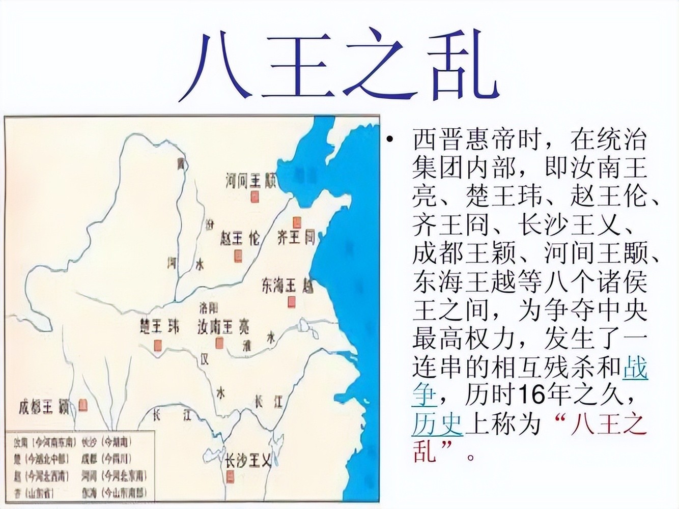 八王之乱:西晋时期的八王之乱是中国历史上一场严重的内乱