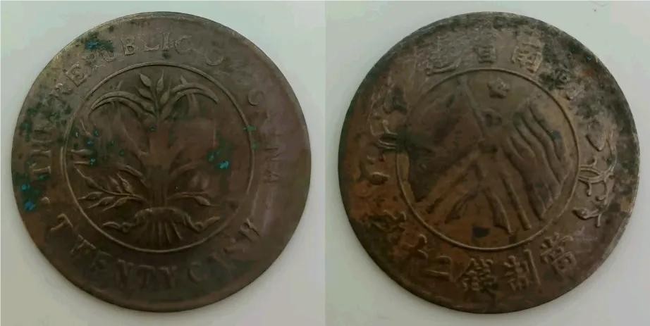 在广西桂林的山水之间,黄先生家中藏有一枚独特的湖南省造双旗币当制钱二十文(五角星版)。这枚钱币并非家族传承,而是黄先生在一次偶然的机会中,于几年前的一次回乡探亲时,从一位年迈的老人手中购得的。那天,黄先生的目光被这枚枚铜色古朴、图案独特的钱币所吸引。他细细端详,发现这枚钱币不仅制作精良,而且还镶嵌着五角星图案,显得尤为特别。经过一番讨价还价,黄先生终于将这枚心仪已久的钱币收入囊中,从此,这枚湖南省造双旗币便成了他收藏生涯中的一颗璀璨明珠。