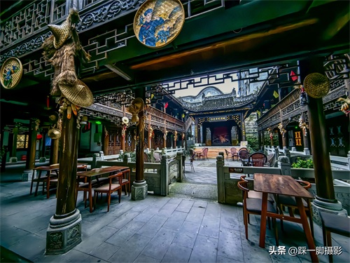 茶楼是四川最有特色的一道风景线。从这茶楼的规模不难猜出白天游客盈门、茶客满座的盛况。