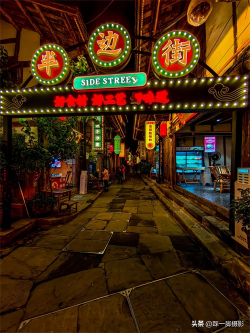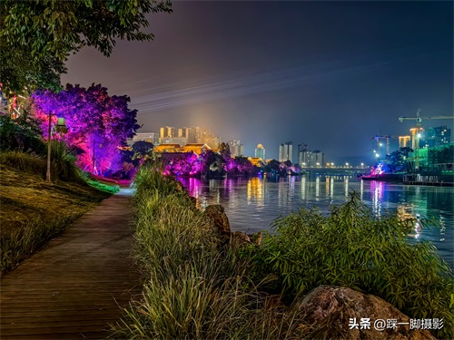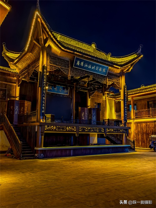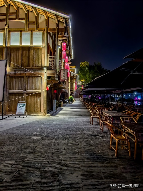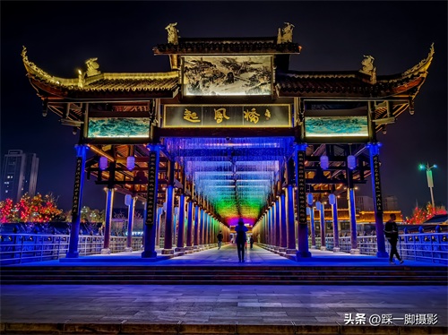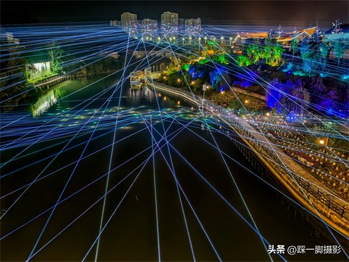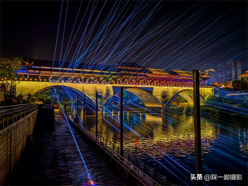 尤其是从那座桥上向四周射出的激光束,给夜色中的古镇披上了一层神秘而现代的面纱,营造出一种未来科技感的氛围,使得古老与现代在这里完美融合。
