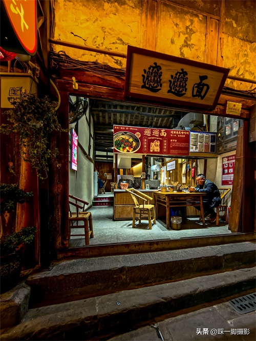 抵达古镇时天色已晚。安排好住宿就找吃的,出门就找到了这家baingbaing面店。(这baing字在在网上费了不少功夫也没能找到 )