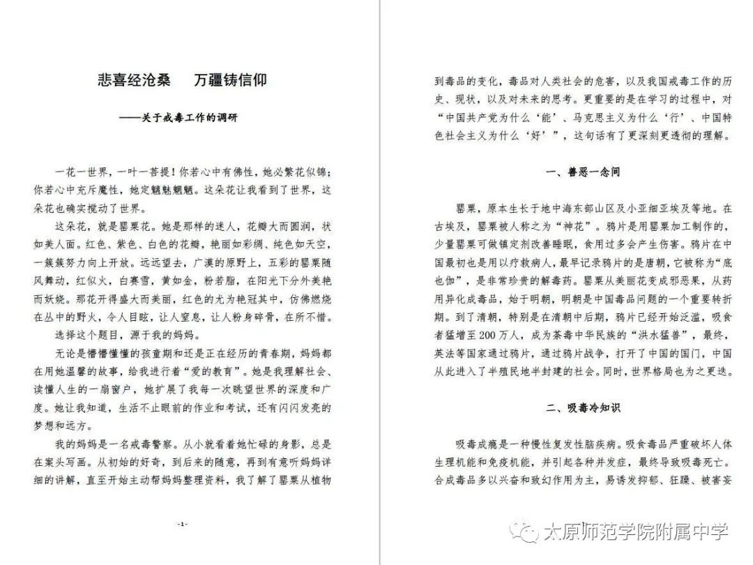 “五四”青年节前夕,第五届“燕园杯”中学生历史写作活动全国奖项揭晓,太原师范学院附属中学冯韵西同学荣获全国一等奖,高中历史教师徐志国被评选为“优秀指导教师”。在之前的省级评选中,乔润曦同学荣获省级一等奖。本次获奖也是太原师范学院附属中学学子五年内第三次荣获全国一等奖。