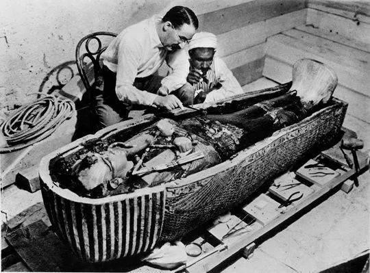 霍华德·卡特和他的赞助人卡纳冯勋爵花费了多年时间寻找图坦卡蒙的陵墓。当他们终于打开墓室大门时,他们发现了一个几乎完好无损的法老墓穴,里面充满了黄金面具、珠宝、家具和其他珍贵文物。这一发现立即引起了全球的关注。