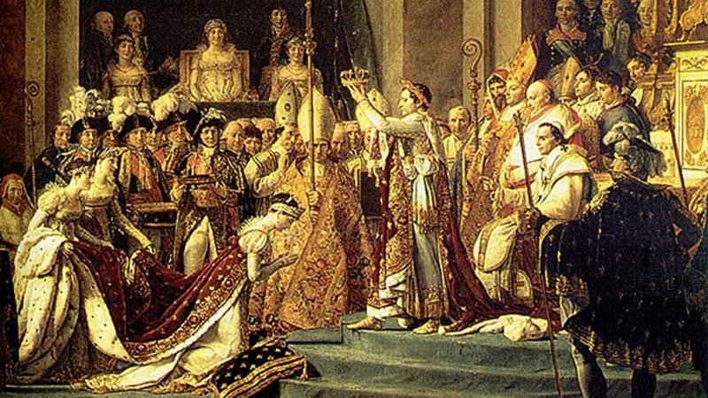 在拿破仑的带领下,法国军队很快挫败了第一次反法同盟军,拿破仑一跃成为了法国英雄,在巴黎短暂休整后又转而远征埃及,但是在这里拿破仑遇到了他这一生为数不多的失败,恰逢此时,趁着拿破仑不在,欧洲各国组成了第二次反法同盟对法国展开偷袭,拿破仑不得不返回法国救场,法国形势得以控制。此时的拿破仑威望极高,在法国各界的支持下,拿破仑发动“雾月政变”,正式登上法国的权利中心,开始领导法兰西第一共和国。1804年3月21日,《法国民法典》正式颁布,不久后巴黎举行全民公投,废除了共和体制,改为帝制,法兰西第一共和国正式结束,拿破仑亲手为自己和皇后带上王冠,自此法兰西第一帝国横空出世,拿破仑大帝由此诞生!