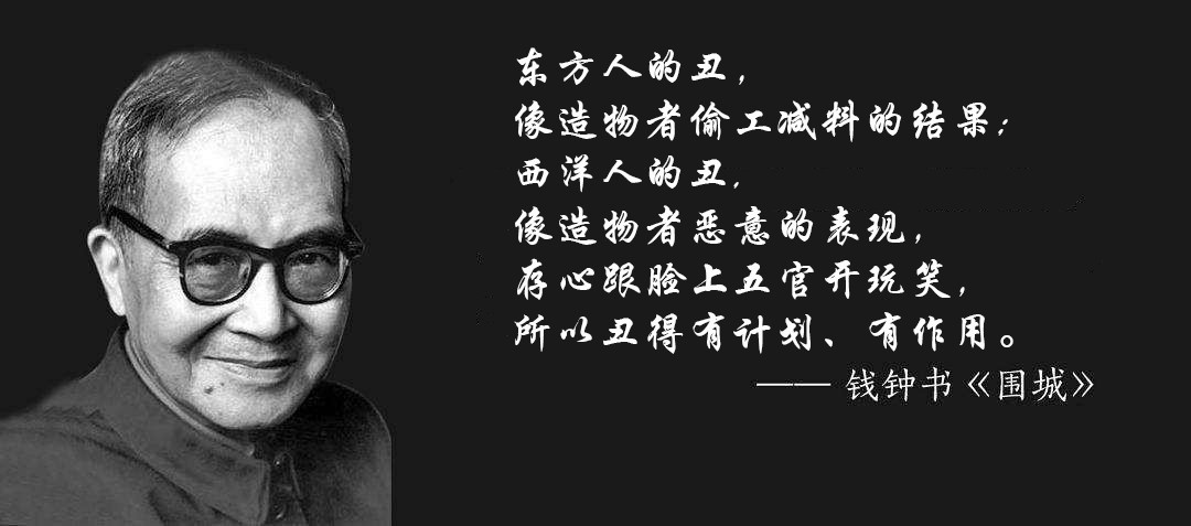 钱钟书先生在他的书《围城》中,就写到过,中国人丑得像造物者偷工减料的结果,潦草塞责的丑;西洋人丑像造物者恶意的表现,存心跟脸上五官开玩笑,所以丑得有计划、有作用。