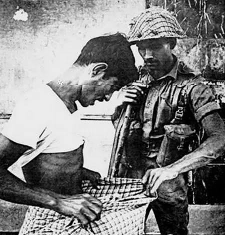 16、孟加拉国独立战争期间,巴基斯坦士兵检查人们是否受割礼