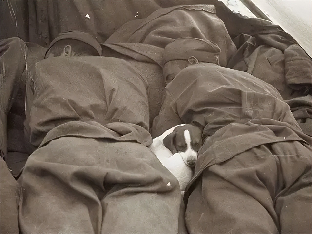 14、二战期间和狗狗睡在一起的俄罗斯士兵
