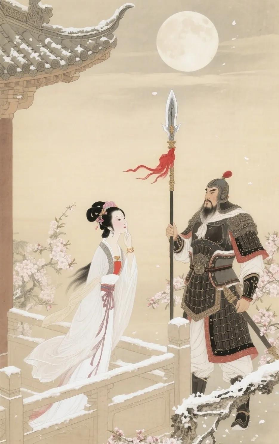 同时,这个故事也是对历史虚无感的一种诗意补偿。在正史中,吕布的失败源于他自身的战略失误和众叛亲离,他的形象更多地是一个有勇无谋的武将。然而,文学作品却赋予了他“为红颜痴狂”的浪漫色彩,让他的形象变得更加丰满和立体。这种虚实交织的创作手法,让原本残酷的历史多了一份人性的温度,让人们在感慨历史兴衰的同时,也能从这段浪漫的爱情故事中,找到一丝心灵的慰藉。