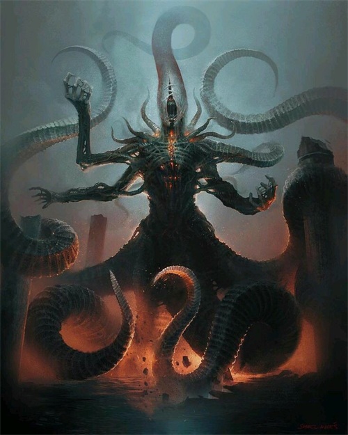阿撒托斯尽管克苏鲁非常著名,以至于整个传说体系都以它来命名,但它并不是旧日支配者中最强大的,也不是故事的中心。占据这一系统中心位置的,是魔神之首阿撒托斯,而奈亚拉托提普则与人类世界接触得更加频繁,而且,和其它的旧日支配者相比,它更喜欢欺骗、诱惑人类。宇宙诞生之初,只有阿撒托斯存在。从阿撒托斯生出了“黑暗”、“无名之雾”和“混沌”。盲目痴愚的阿撒托斯最初生出的是“黑暗”,而“黑暗”产生出了“至高母神”莎布·尼古拉丝,她拥有很强的生育能力。