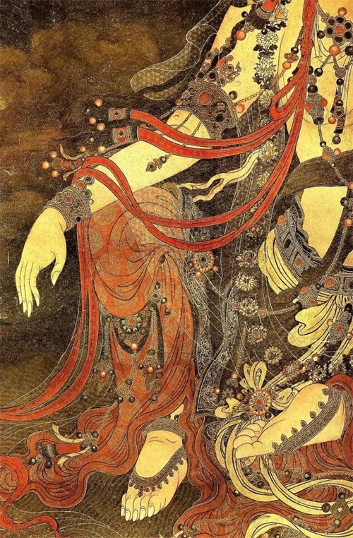 宋朝后,“文人画”不断流行,慢慢出现了按照个人理想以及审美情趣表现佛教内容的趋势。这时候,菩萨塑像基本就以女性的形象出现,作为展现穿着风格的璎珞就得到进一步的发展以及变化。