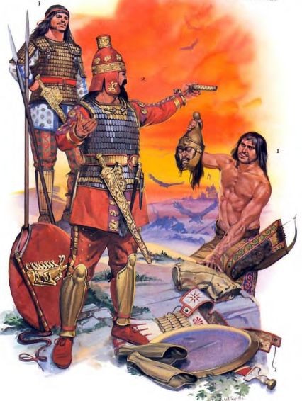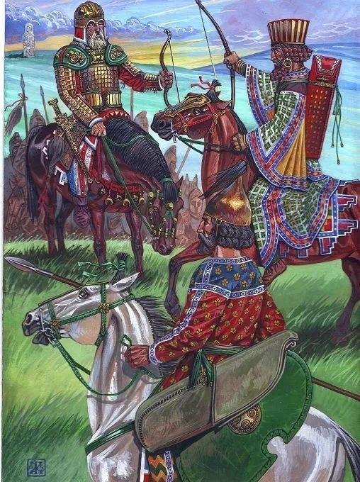 到了公元1世纪,残存的斯基泰人试围进行最后一搏。他们计划攻克里米亚半岛的希腊城市,但被驻扎在那里的罗马守备队击溃。除了部分南部人口被希腊人同行,更多分散在草场的部族被萨尔玛提亚人征服。在之后的几百年里,他们将作为后者麾下的骑兵出战。但在希腊-罗马世界的记录者眼中,他们依旧是相对独立的一个群体。