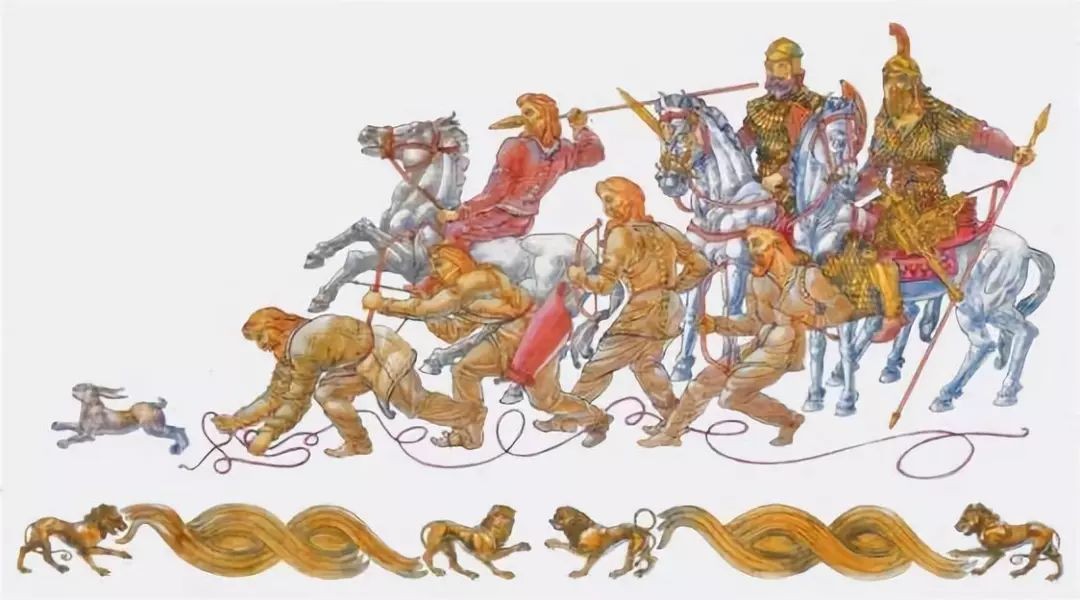 斯基泰文化的核心器物除武器之外,还包括马具、贵金属制作的兽纹艺术饰品。由于游牧经济的普及,东西方草原地区的交流更为频繁,动物纹饰和狩猎纹饰是经济模式在艺术领域的直观反映。数目庞大而且精美的黄金,也是斯基泰人炫耀与储存财富的常用手段。游牧经济圈所生产出来的马匹、皮毛等产品,很容易超出本地人群的消费能力,而极端天气或者瘟疫等会导致这些财产大幅缩减。因此,草原社会需要寻找一种能安全便携的保值物品,贵重且容易加工的黄金就是最优选择。