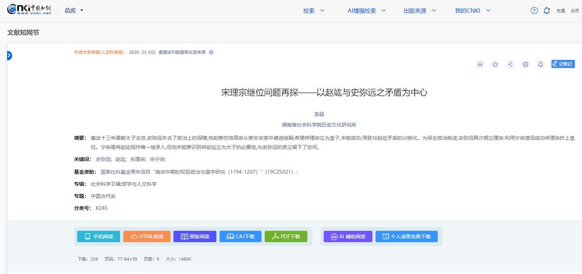 《宋理宗继位问题再探——以赵竑与史弥远之矛盾为中心》——李超