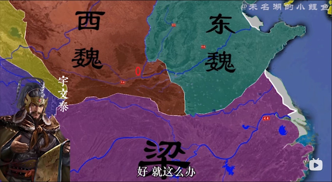 B站摘取的东西魏对峙图,打红圈的地方是宇文邕的出生地