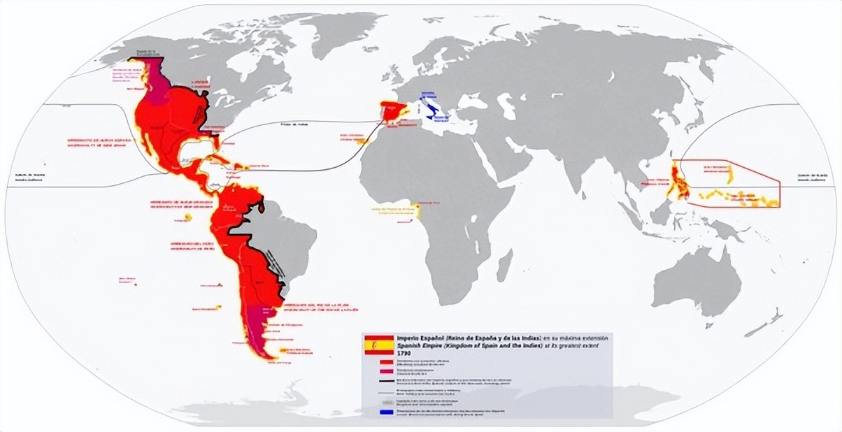 西班牙帝国是地球上最大的帝国之一,并成为世界历史上最早的全球帝国之一。