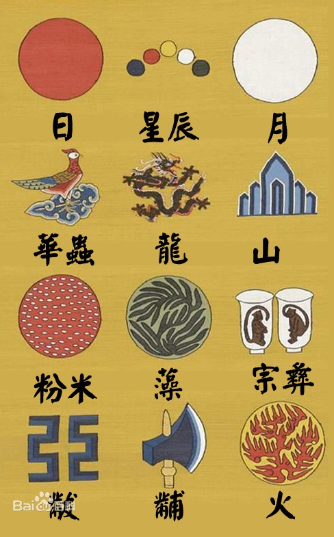 不过要了解这几种冕服我们就得先了解冕服上的图案所代表的意义,这样才容易知道为何不同的冕服要选择不同的纹章和冕冠。