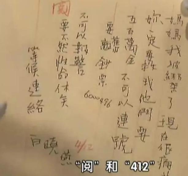 而接到电话的白冰冰当时正在忙碌的工作,突然收到消息后,被吓了一跳,随后她按照歹徒的要求到了目的地,但是并没有看到女儿,只是看到了女儿的一节手指和一张女儿的亲笔手书,上面的绑匪要求白冰冰拿出500万的美金。