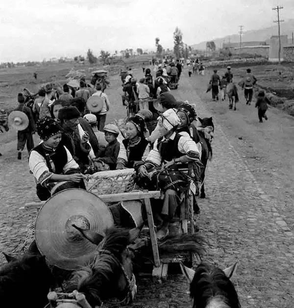 1961年春,云南省大理市喜洲人民公社社员去赶街。