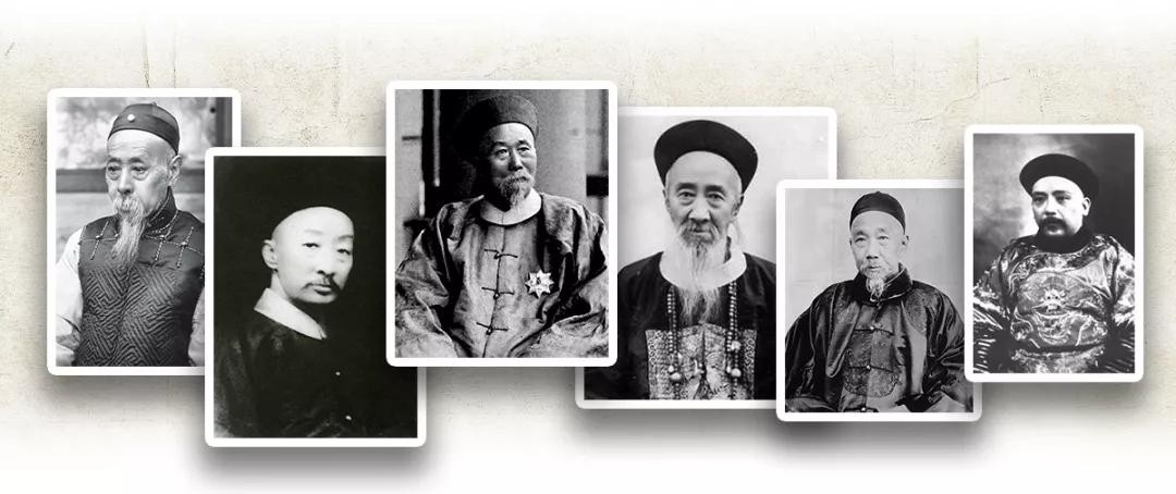 1901年4月21日,清政府成立督办政务处,作为主持变法机构,宣布实行“新政”,先后委派亲王大臣主持该处事务。图为其中较具影响力的六人,左起:庆亲王奕劻、荣禄、李鸿章、张之洞、刘坤一、袁世凯。