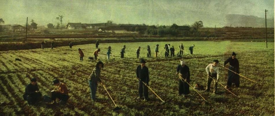 1961年,大别山新县(河南省)八里畈公社春耕。