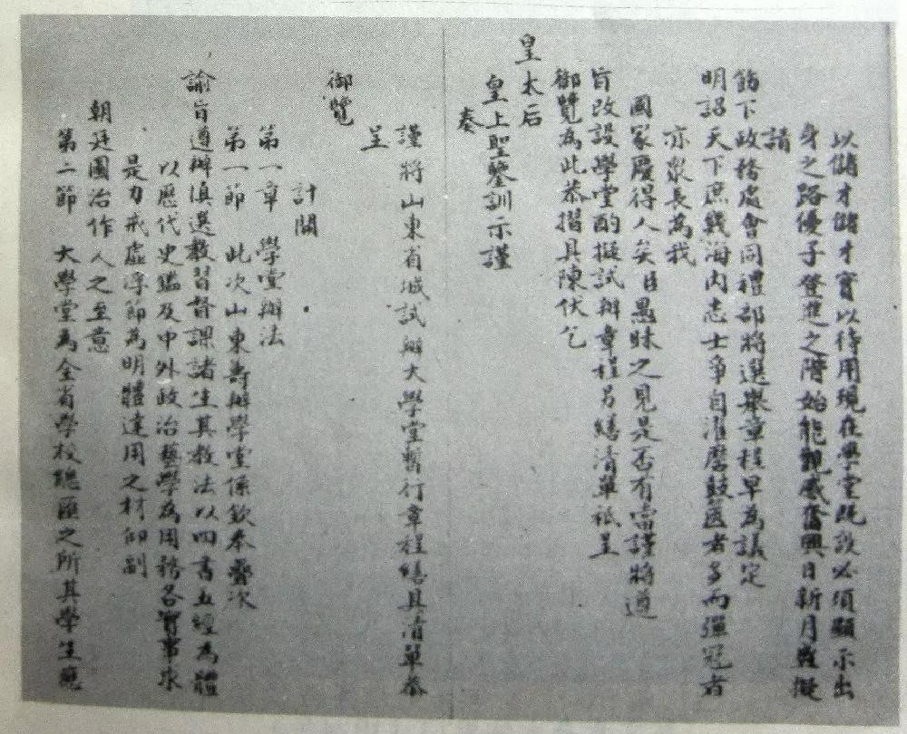 袁世凯呈光绪帝《山东省城试办大学堂暂行章程》。