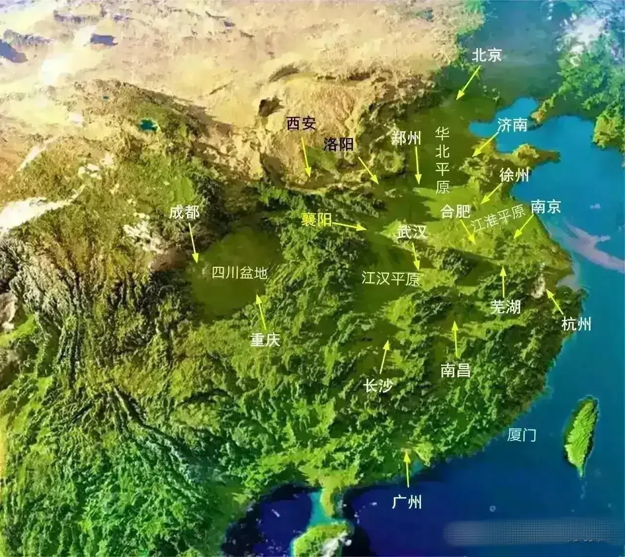 侧着看这张图,发现除了山东丘陵太突兀了,其它地方好平整