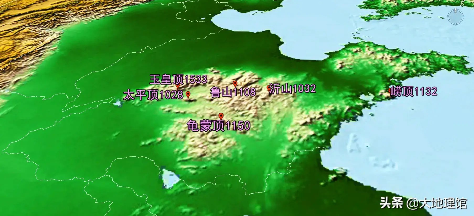 泰山最高峰玉皇顶1533,所以孔子说登东山而小鲁,登泰山而小天下(华北平原都在脚下),这张图就很值得参考。更有诗圣杜甫说“会当凌绝顶,一览众山小”。五岳独尊的泰山一直都是华北平原上一颗明珠。