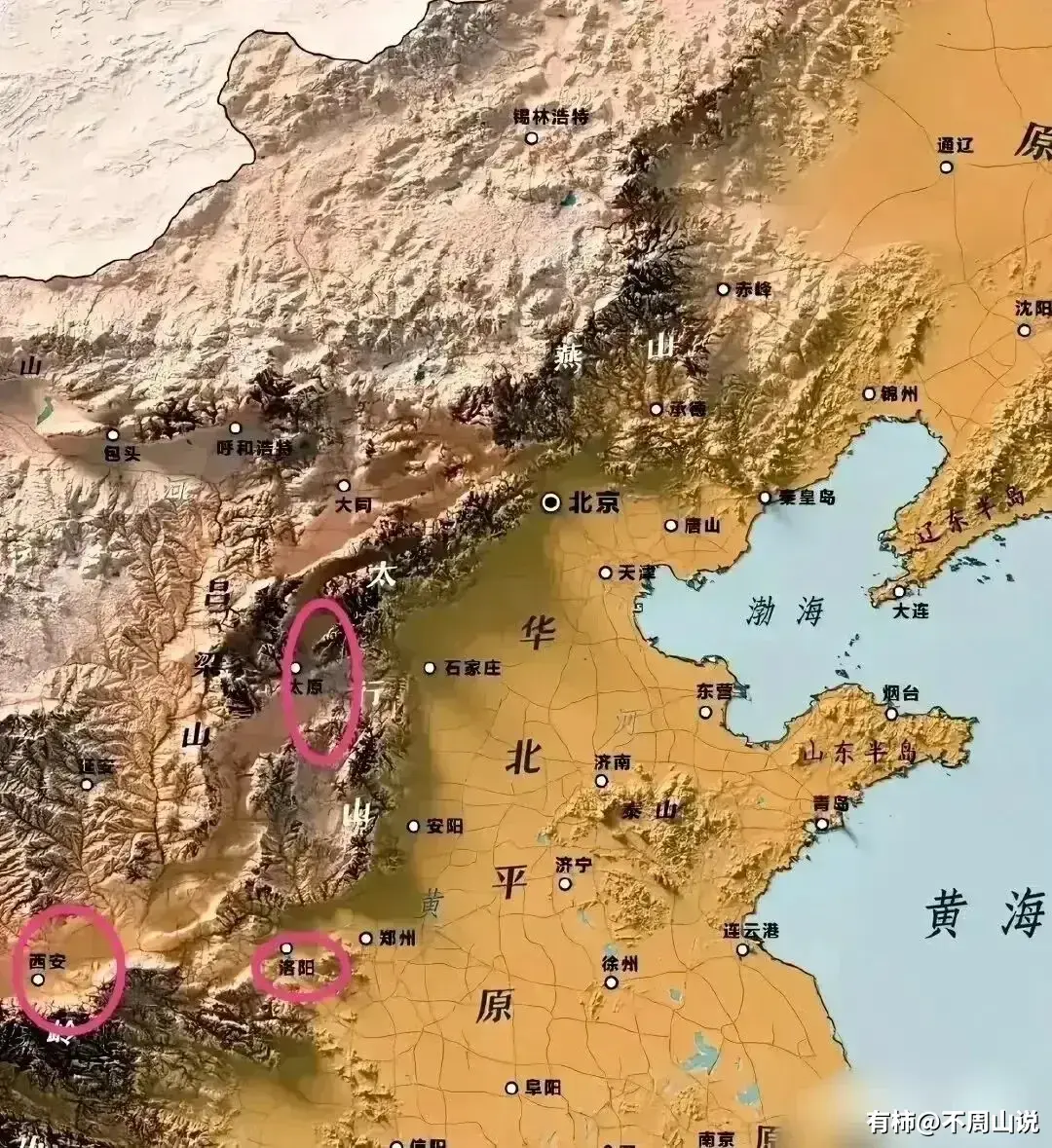 在很多年前,远古的时候,黄河的出海口是今天的三门峡,华北平原还是浅海,水深100米左右,山东丘陵还是几个大的岛屿,山海经里面海外仙山或许说的就是现在的山东丘陵。后因洪荒时代,大量的泥沙和黄土冲积形成平整的地面,于是华北平原就慢慢诞生了。