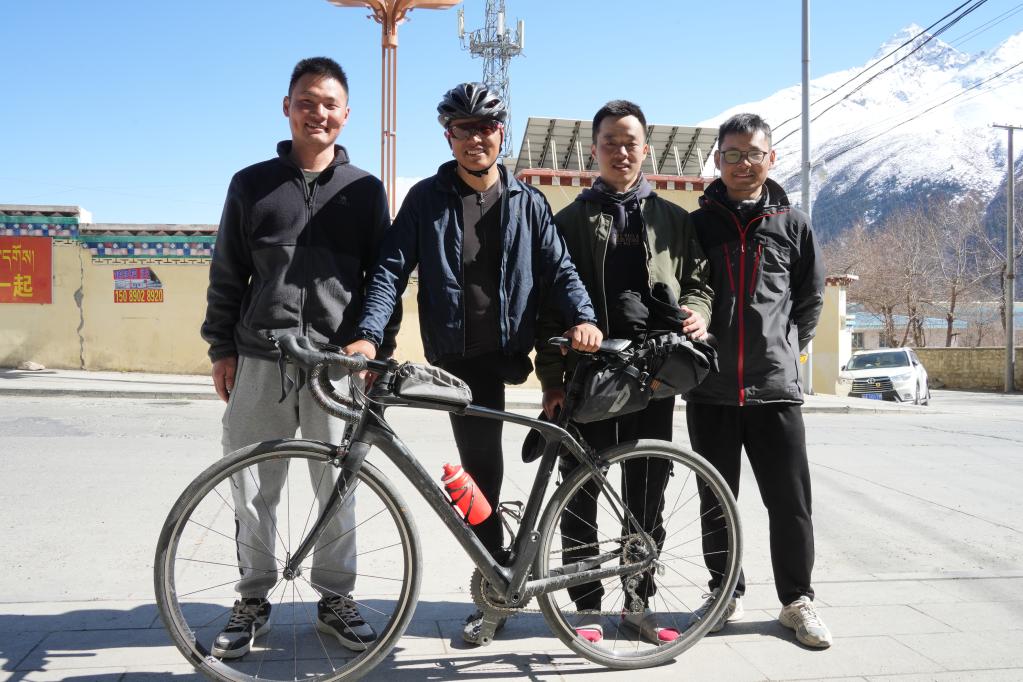 孙有志和骑友在西藏昌都然乌湖畔合影。 新华社记者 陈尚才 摄