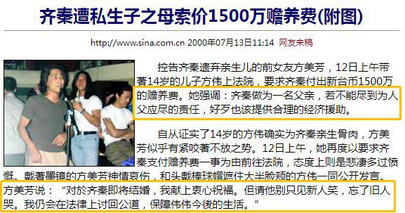 更别说后来:齐秦又被踢爆拖欠私生子抚养费,&私生子想要一个完整的家……