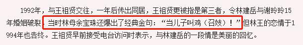 就在王姐感情空窗之时,93年,富商林建岳插了进来——
