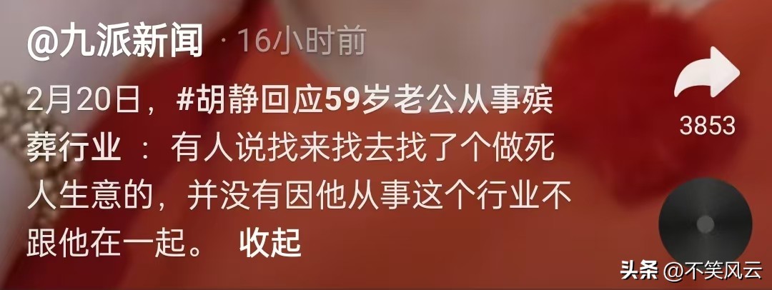 [2]官方媒体:九派新闻2025-2-20《胡静回应59岁老公从事殡葬行业》