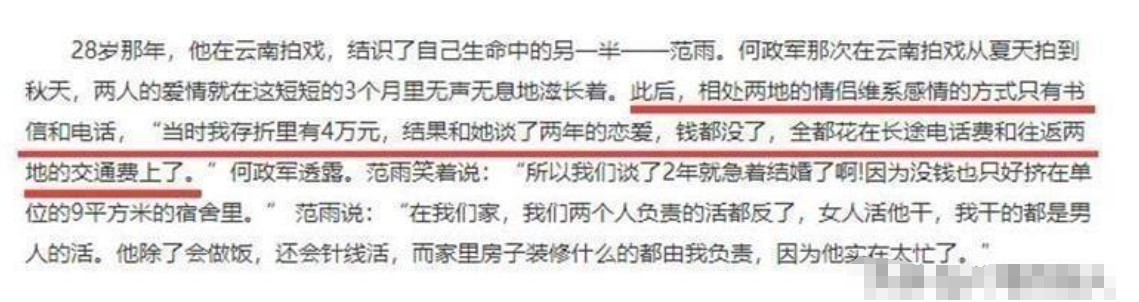 在这之后,范雨和何政军就在剧组,一起甜蜜相处了3个月,可惜,3个月之后,他们俩就相隔两地,只能通过电话和书信往来,不得不谈起了“异地恋”。