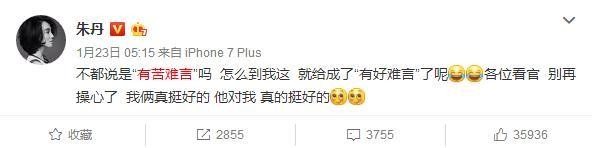 朱丹总是在微博分享带娃心得,也时不时的会晒出老公的照片,为周一围的新剧宣传之类的。刚开始时,大家都很羡慕她有一个帅气又有实力的老公,经常留言祝福她。