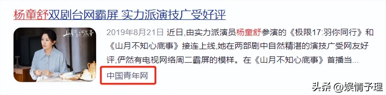 这部剧不仅获得了飞天奖,也让杨童舒在娱乐圈崭露了头角。