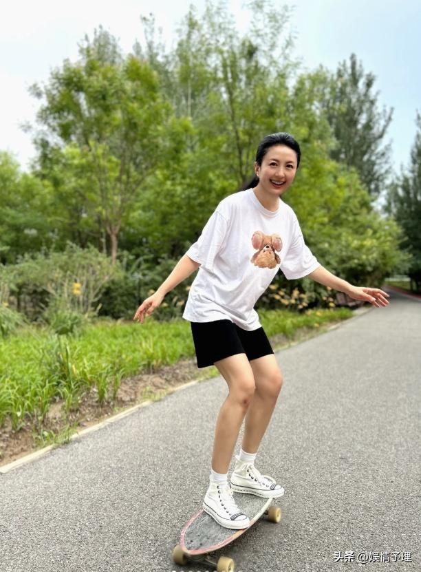 不过让人意外的是,她还学会了滑滑板。