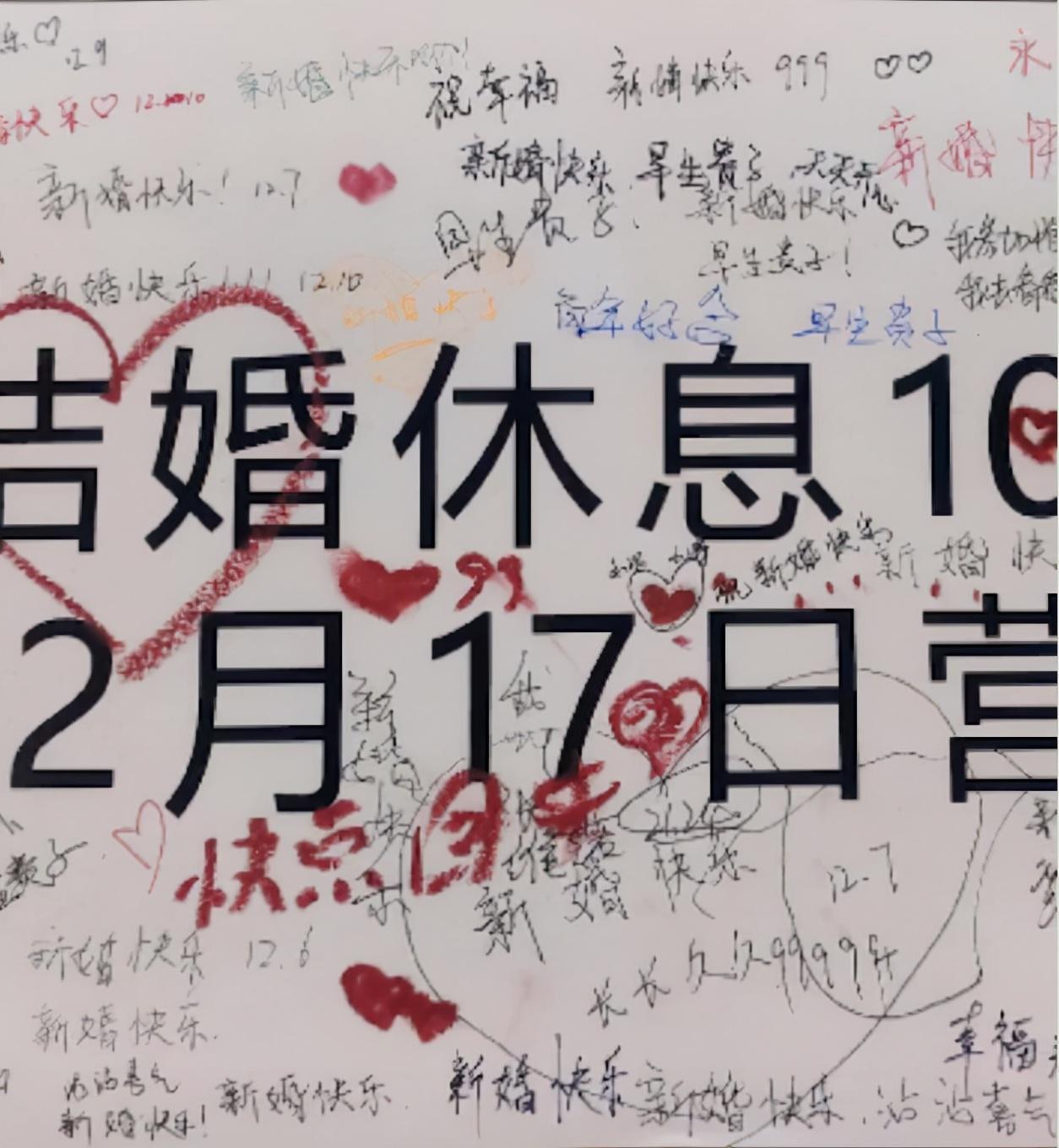 含蓄点的同学祝老板新婚快乐,开放大胆一点的同学更是直言“早生贵子”,还有“灵魂画手”在纸上留下“大作”。