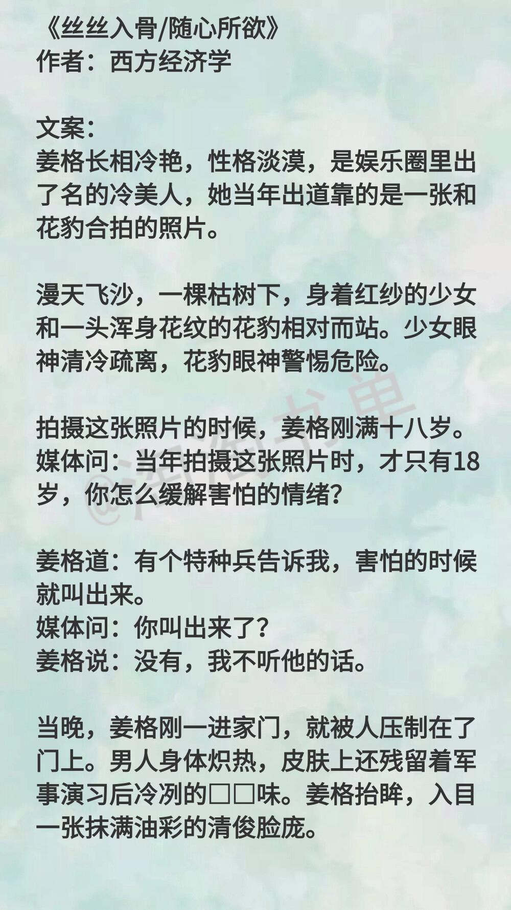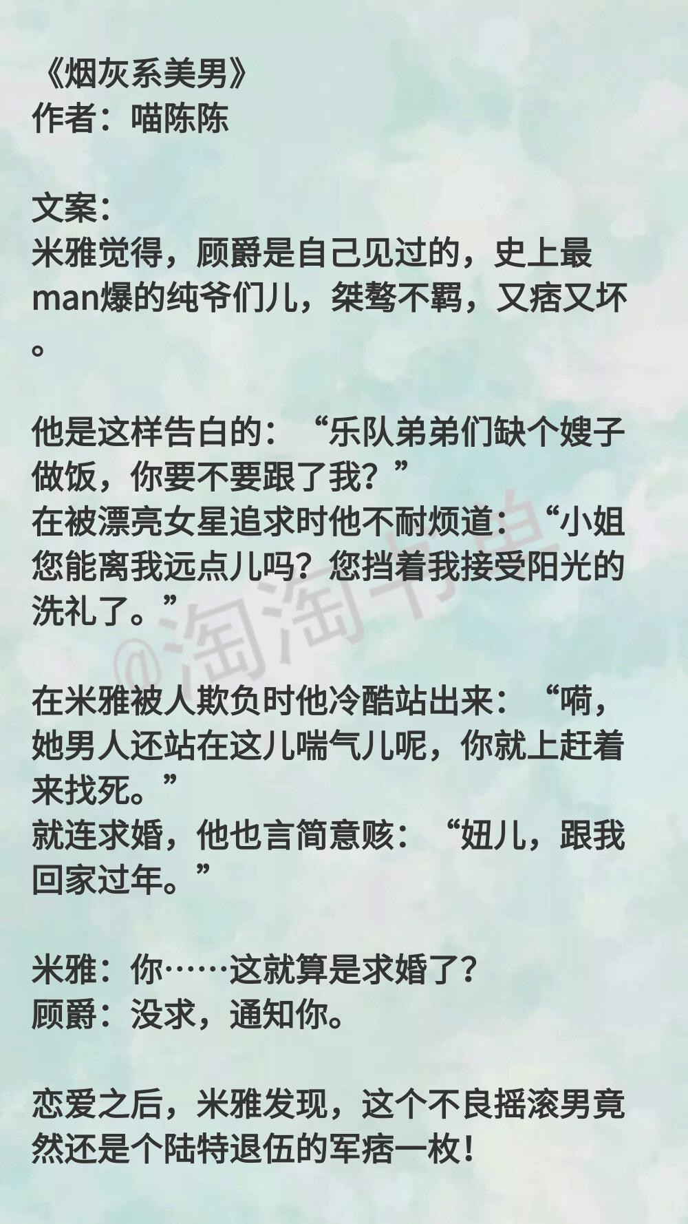 京味儿,加上以前是特种军人,一身痞气的摇滚明星男主,爱上外表装白莲花,实质泼辣的女演员。讲娱乐圈的事情比较少,讲两人的互动比较多。女主吐槽男主直男癌,大男子主义,但在他man爆了的气场下,还是爱上了他。还有一个姊妹篇,清酒系美男,是男主弟弟...