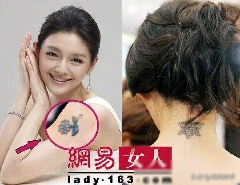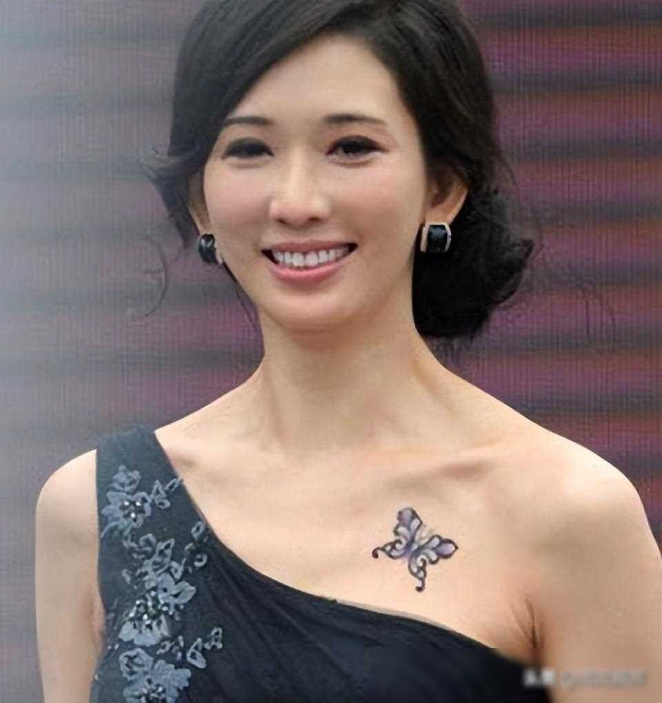 再来看看林志玲。这位气质清新的模特出身的女演员,以其高挑的身材和优雅的气质著称。尽管她身上的蝴蝶纹身可能是贴纸,但无疑给她增添了一份神秘感,也展现了她的个性与魅力。