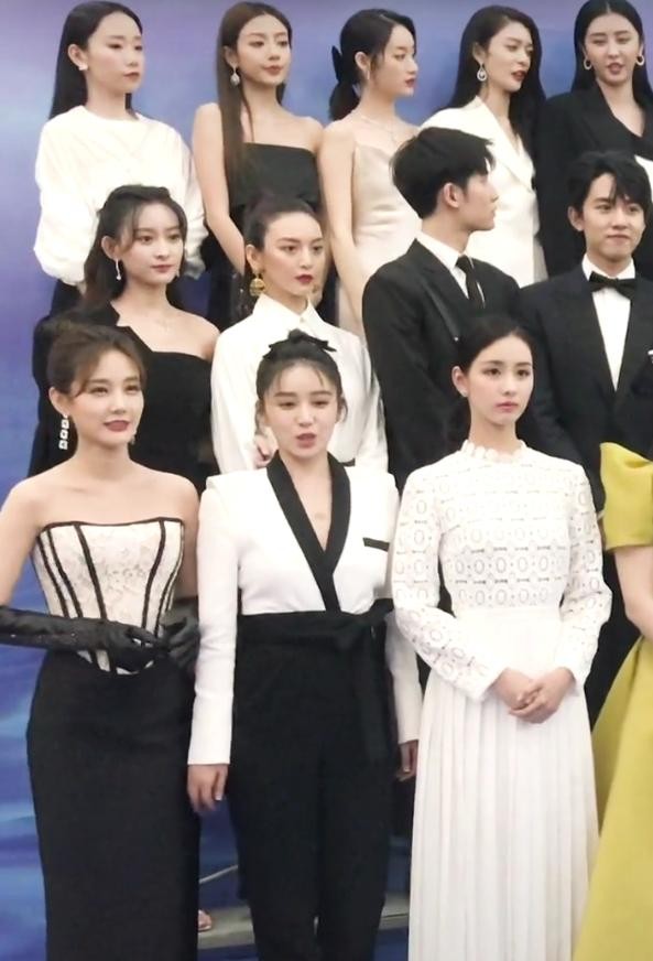 和李一桐、陈都灵站在一起,好像也矮了一点: