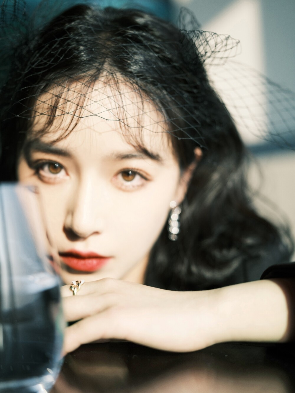 浅浅的瞳色又为她的眼神带来了一层朦胧感: