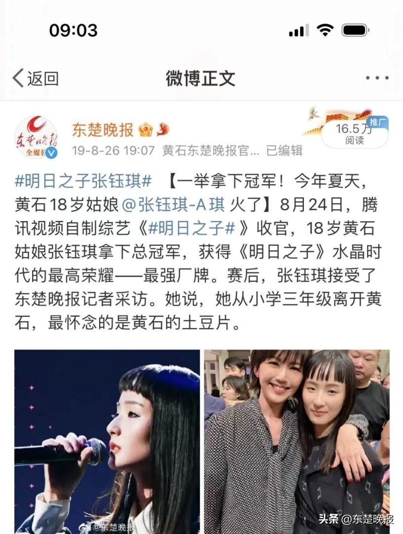 2019年8月26日,本报报纸与微博再次关注了张钰琪,参加《明日之子》获“最强厂牌”的消息。