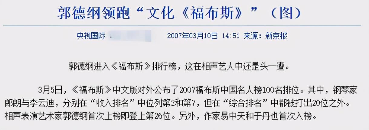 幸好这样陪着吃苦奋斗的日子没过太久,2007年,郭德纲登上福布斯中国名人榜,排名第26,对此成绩,身为贤内助的王惠功不可没。