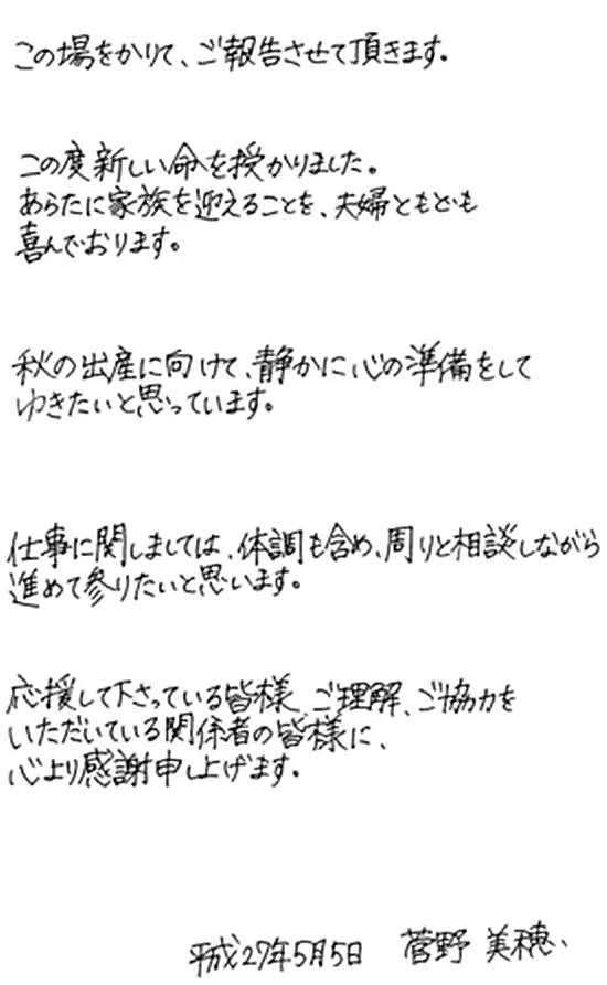 菅野美穗在与堺雅人生下孩子后,用其漂亮的字向大家公布了这一喜讯。