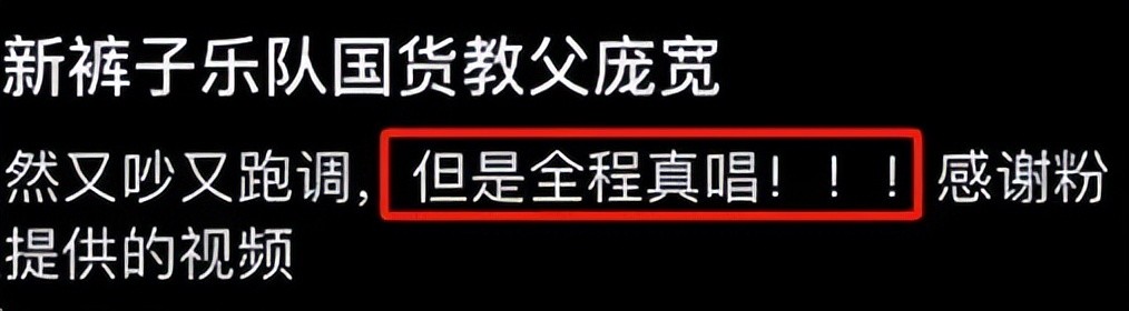新裤子乐队主唱庞宽最近就在个人账号上发布了疑似嘲讽五月天的假唱的内容。他不仅转发了一段演唱会的视频,更是在配文中直言不讳地表示:“虽然又吵又跑调,但是全程真唱。”他还补充说:“感谢粉丝提供的视频”。