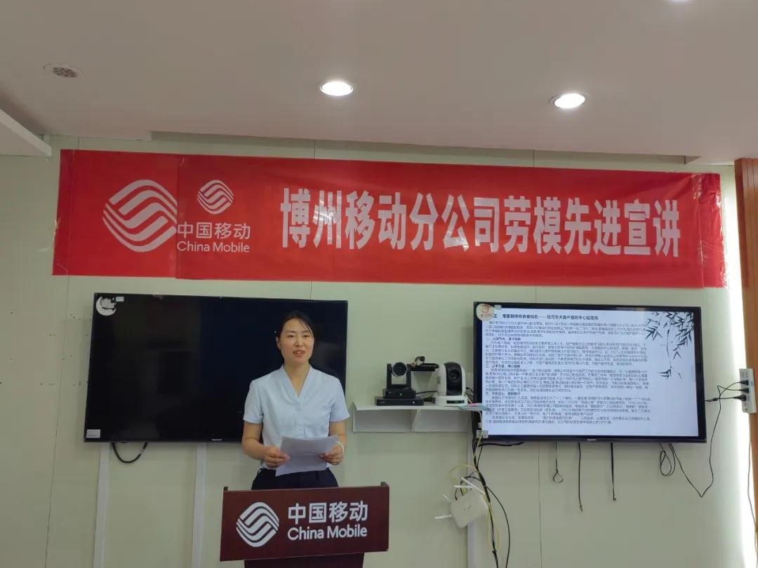 程雪梅在博州移动分公司劳模先进宣讲会上讲述自己的故事。(图片由本人提供)
