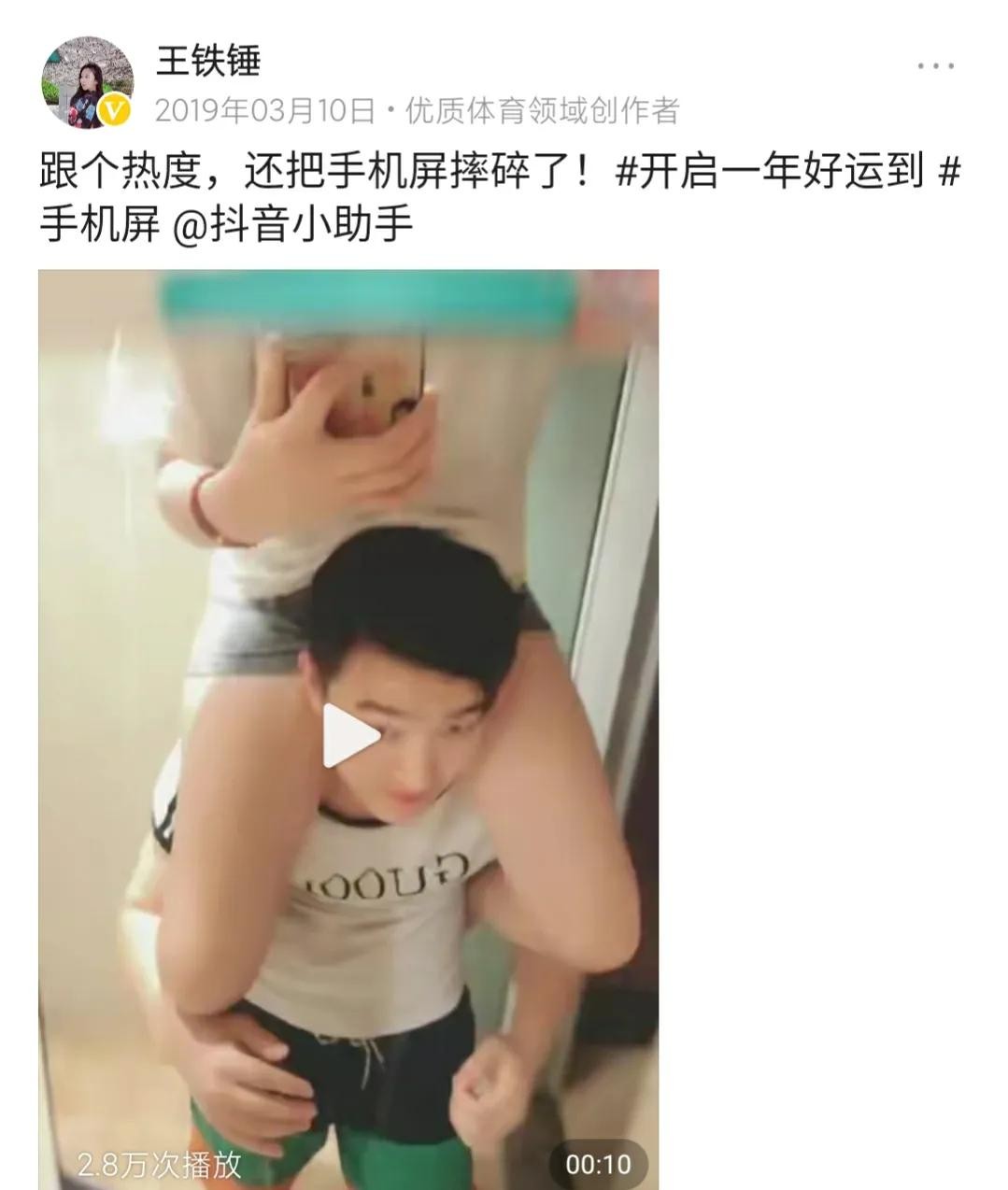 王铁锤刚开始时运营自媒体时并不是拍摄象棋视频的,而是以记录情侣日常生活为多,甚至有些时候还会打一些情色的擦边球。2019年6月,她在上传了一条和小区老大爷下象棋的视频以后,一下子爆火,获赞超百万。于是,她解锁了流量密码,在3个月内,迅速吸粉近千万,成为某瓜视频头部网红。