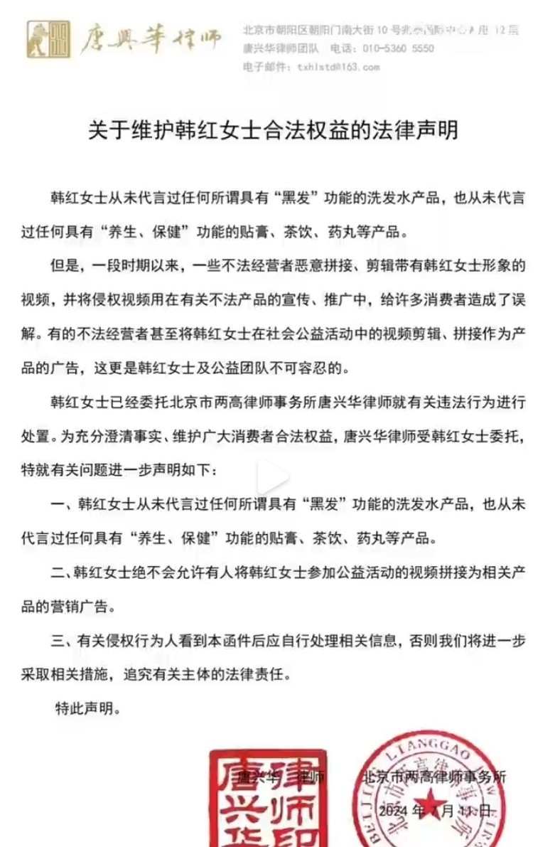 韩红的澄清与辟谣